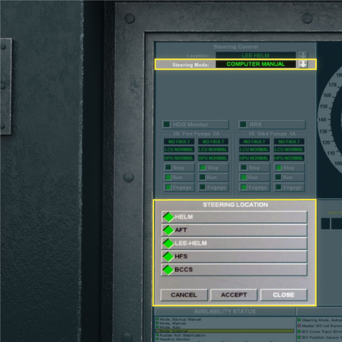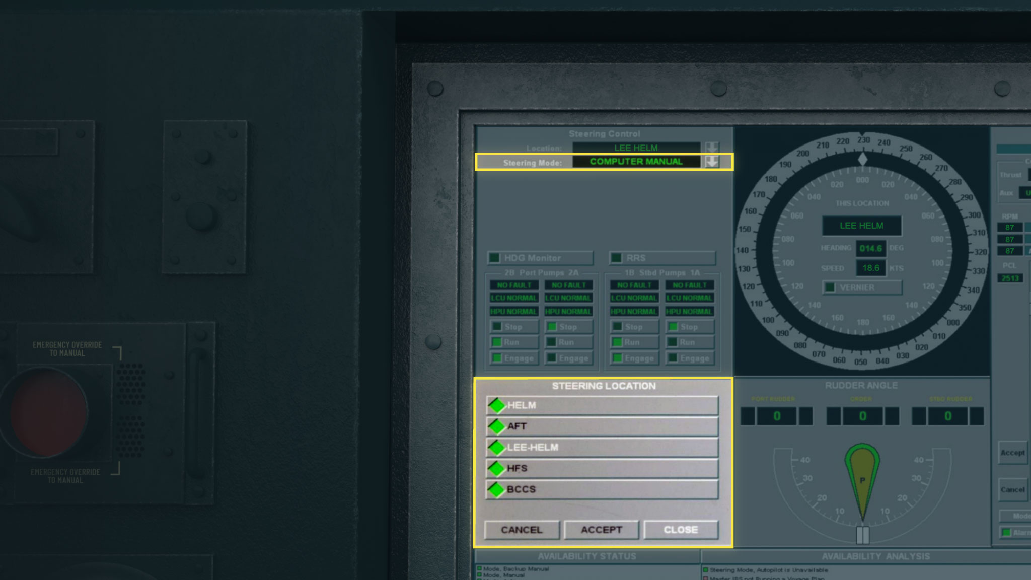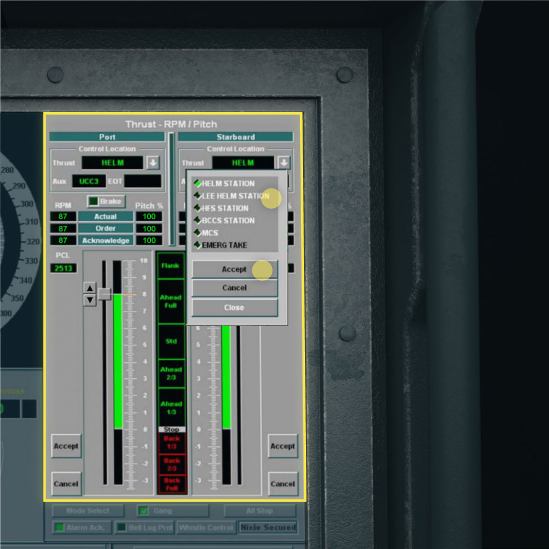 The McCain can be controlled from the IBNS stations on the bridge and from a backup station in the rear of the ship.